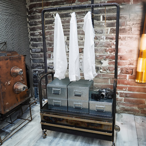 細部に宿るインダストリアルデザインの魅力。オーダーメイドの店舗什器では特に、ガタつきのないシャープな溶接や、わざと荒々しさを残した仕上げなど、政策におけるディテールへのこだわりが空間の質を決定します。